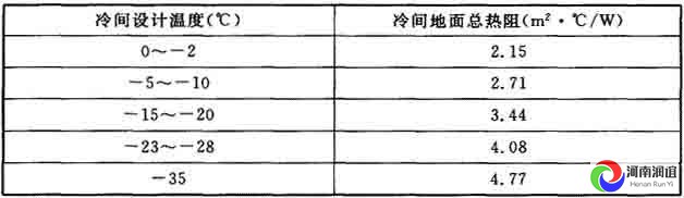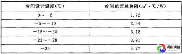 8 冷間直接鋪設在土壤上的地面總熱阻應根據冷間設計溫度按表8的規定選用。